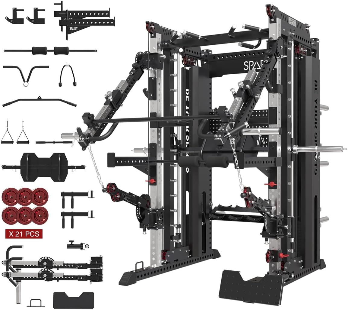 | Included Components | 1x SPART Multifunctional Commercial Power Cage Smithe Machine - Red, 396LB Weight Stacks (198lb Per Side) |