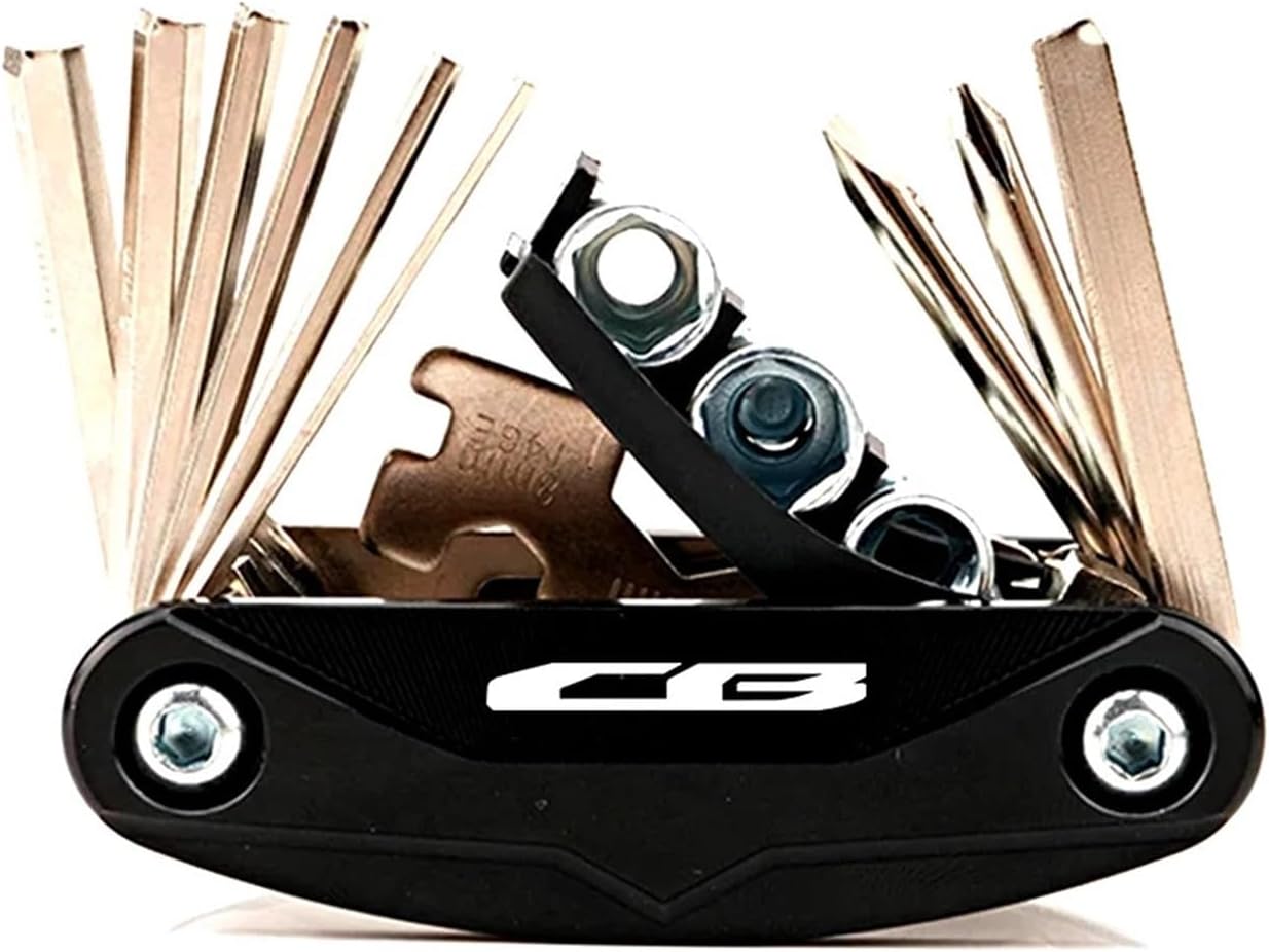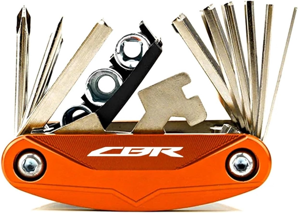 Motorcycle CNC Multi Tool Repair Screw Driver Set compatible with CBR 600RR CBR1000RR CB500X CB500F CB650R CBR650R CB1100 CBR 900RRBasic FunctionThis toolbox includes 16 different tools, easy to carry. It can be used for tightening and loosening bolts and nuts, for modifications or repairs. This tool set is a valuable addition to your toolkit, a versatile and practical choice for anyone.High-quality MaterialTheTool Repair Screwdriver Setis made of CNC Aluminum and high quality ABS plastic shell. It is durable, solid and not easy to fade.Package Include1 x Multi Functional BicycleTool2mm ,2.5mm ,3mm ,4mm ,5mm ,6mm Allen wrench each one;8mm ,9mm ,10mm Socket wrench each one;8mm,10mm and 15mm Flat Wrenches each one;Straight and Cross screwdrive;14G Spokes tool;Fitment compatible with CBR 125R 954 600 F4i 650F 650R 1100XX 1000F CBR 600RR 1000RRcompatible with CB 650R 1000R CB650R CB650F CB600F CB500X /F CB1100 CB1000Rcompatible with all motorcycle