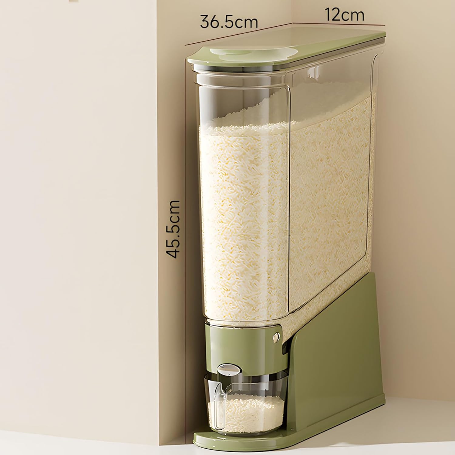 Features: Space Saving Design: Narrow shape crafted for kitchen corners enhances storage capacity without occupying extra room, perfect for compact kitchens and well arranged pantries. Safe Storage Materials: Constructed with sturdy PP+PET+ABS blend that ensures secure food containment without strong scents, supporting wholesome preservation of . Effortless Portion Control: structure with included measuring cup enables smooth handling and precise dispensing for easy rice management. Visible Container: Clear body allows effortless tracking of contents for timely replenishment and better control of rice and dry ingredients. Secure Sealing: Features silicone lining and snug lid to block dampness and parasites, keeping contents in optimal condition while deterring external factors. Specifications: Substance: Function: Sealing, impermeable, - Capacity: 4L—5L Applicable gift-giving occasions: housewarming, trade fairs, employee benefits fashion: light luxury Note: Pay attention to the storage methods. Package includes: Storage bucketx1